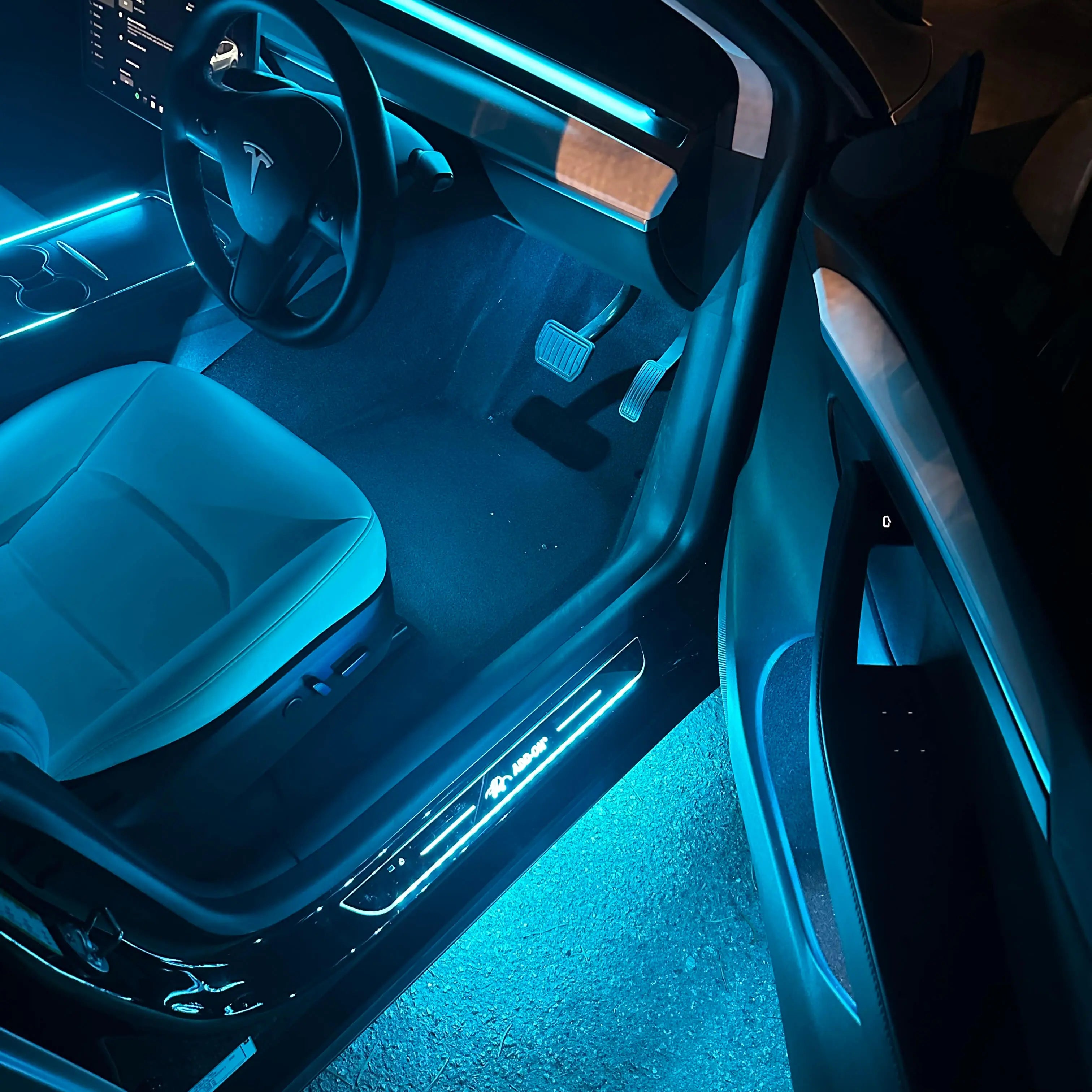 Transform your car’s entrance with our sleek LED Door Sills, designed to illuminate and impress. These glowing entry guards not only light your way but also provide a stylish, modern look to your vehicle. With the ability to cover scratches and scuffs, they are the perfect upgrade for both function and flair.