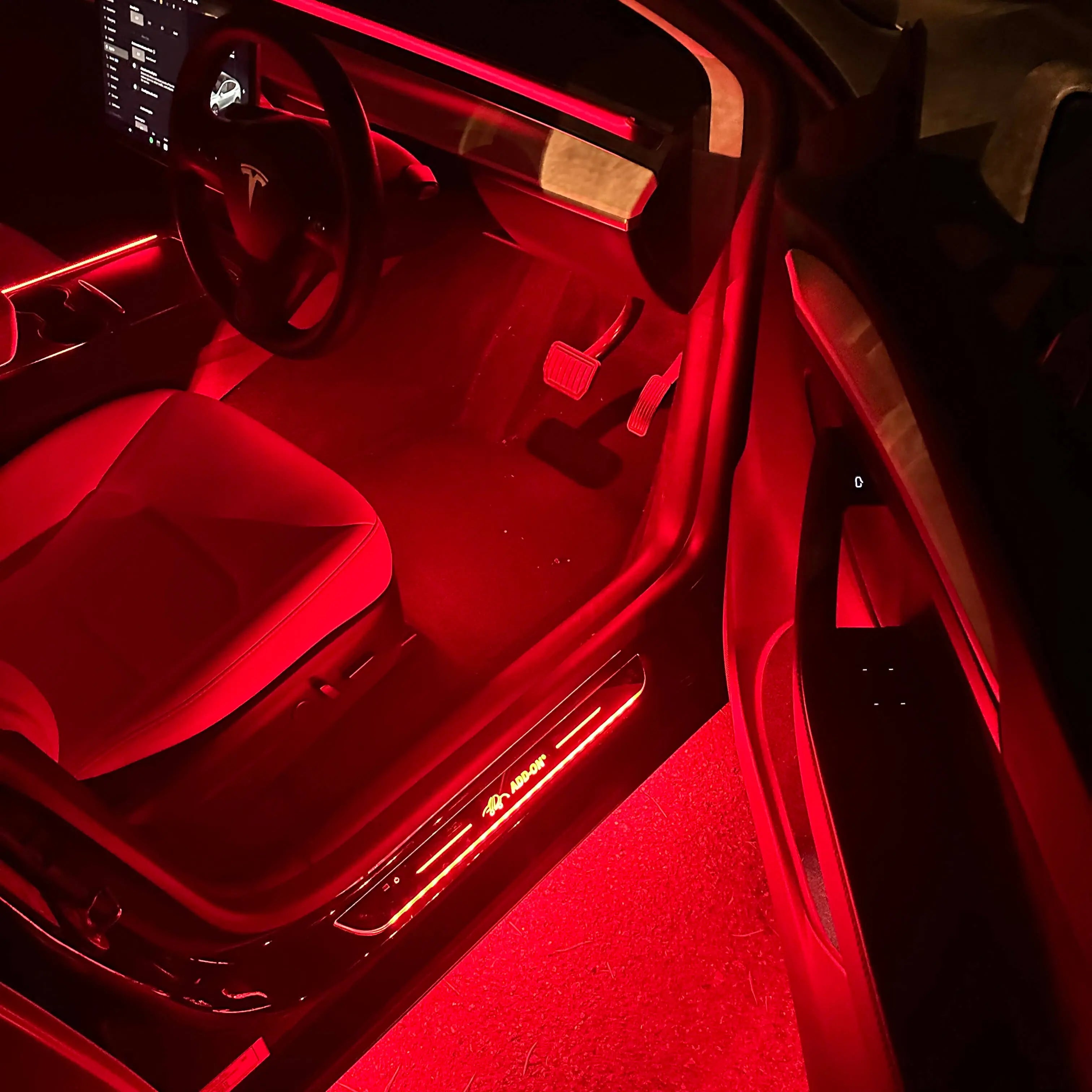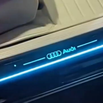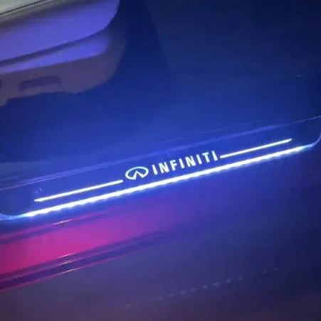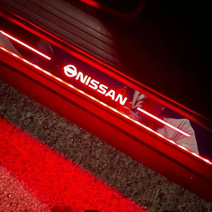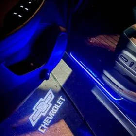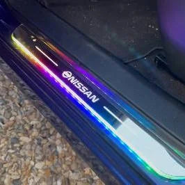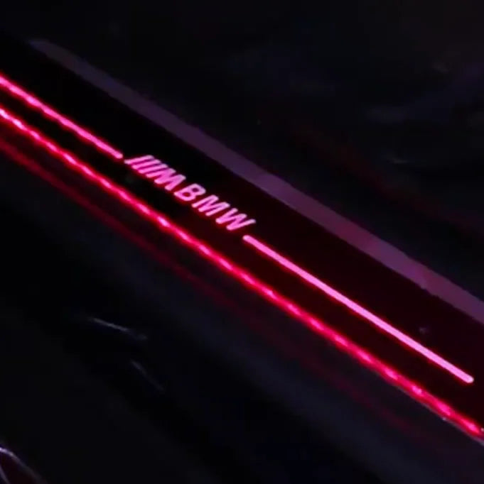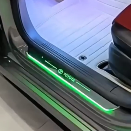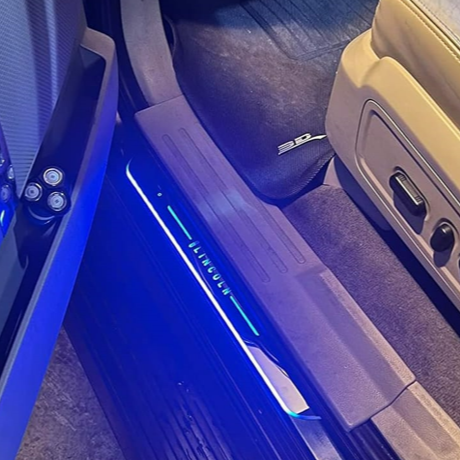 "Elevate your car’s entrance with sleek, rechargable LED Door Sills that light up your vehicle's name and logo for a modern, stylish look."