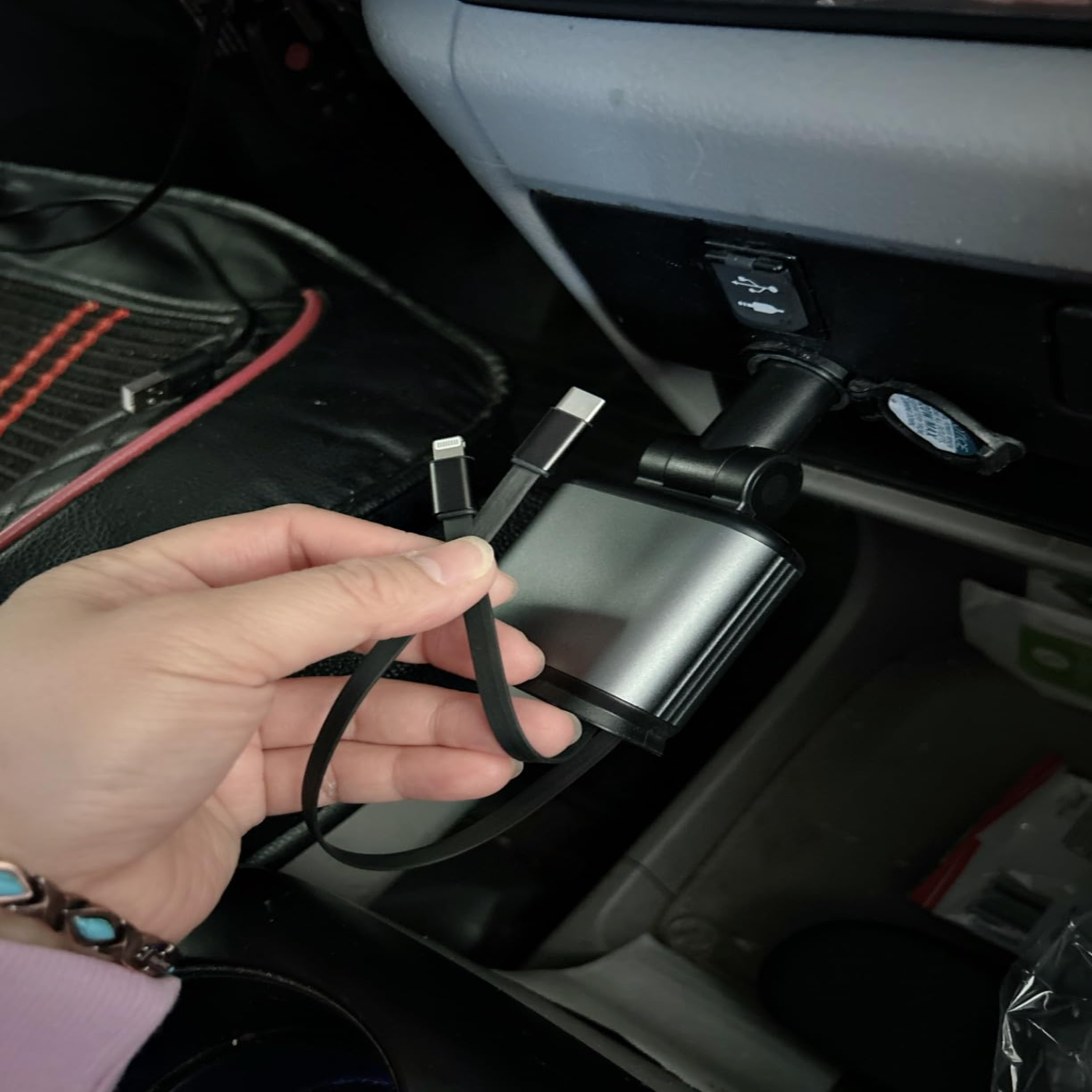 Our 4-in-1 chargeport design boasts two retractable charging cables (Type-C and iOS) and two outlets (USB and Type-C), allowing you to charge up to four devices simultaneously.